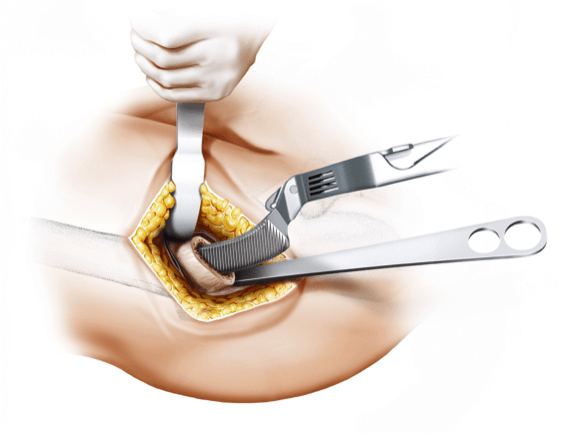 HERE YOU CAN LOOK OVER MY SHOULDER DURING THE OPERATION OF A SHORT STEM PROSTHESIS: