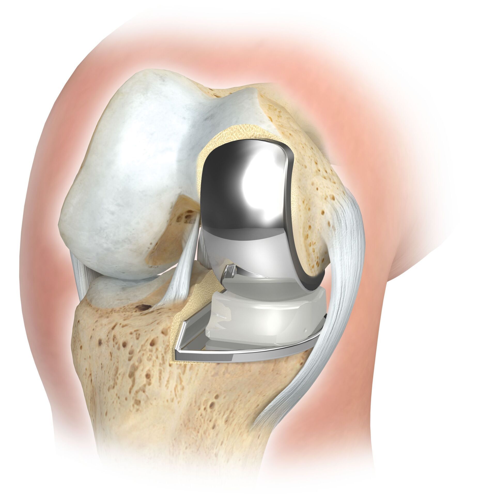 Partial knee replacement is possible in all areas of the joint, but is most commonly performed on the inside of the knee joint and is often referred to colloquially as a sled prosthesis. Similar to a full prosthesis, the defective cartilage is replaced with a new surface and a plastic inlay is inserted in between. For a partial prosthesis, all ligament structures, especially the cruciate ligaments, must be largely intact.