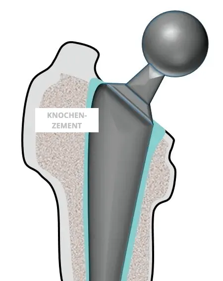 - Zementierte Implantate (bei Osteoporose)