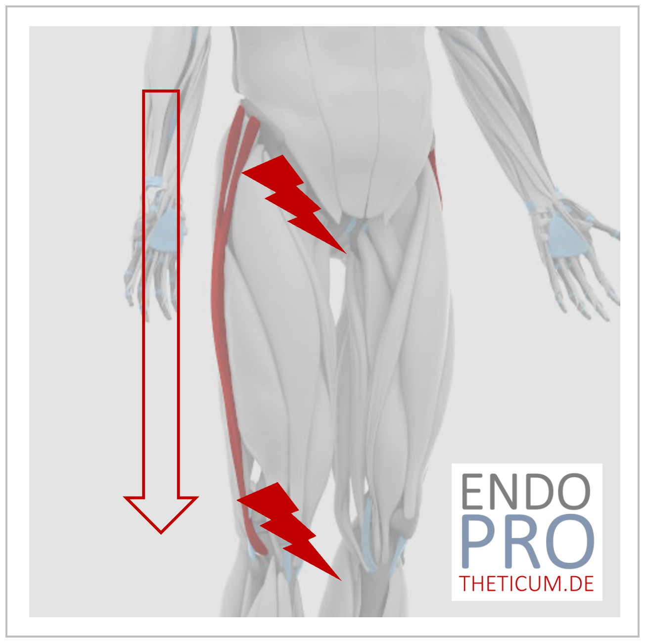 - Nervenbahnen und Schmerzausstrahlung: Die Nerven, die die Hüfte versorgen, überlappen mit denen des Knies. Schmerzen aus der Hüfte werden daher häufig „projektiert“ und im Knie wahrgenommen.