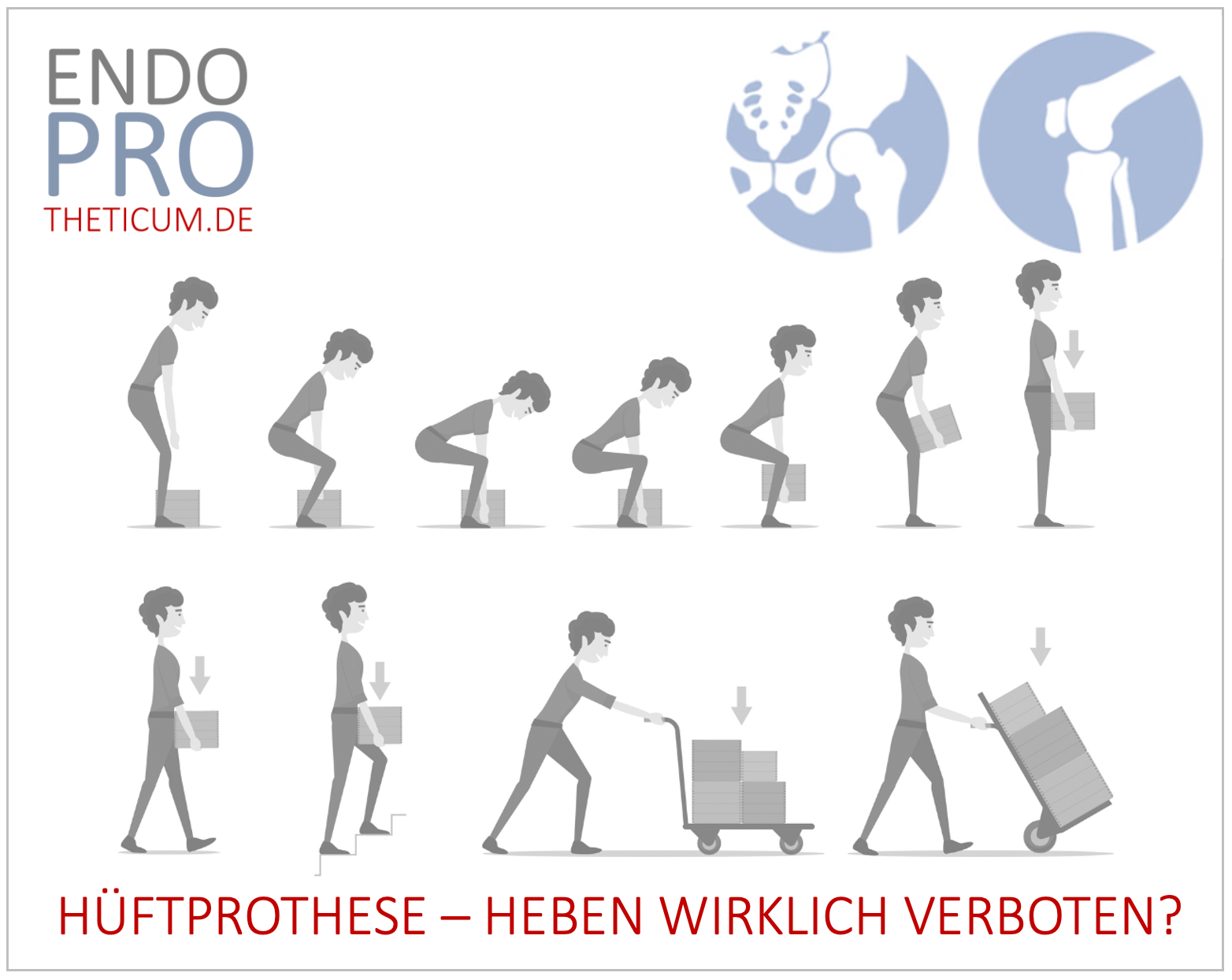 Doch die Zeiten haben sich geändert. Durch minimal-invasive Operationstechniken, verbesserte Implantatdesigns, moderne Gleitpaarungen und ein tieferes Verständnis für die Belastbarkeit von Prothesen ist vieles, was früher galt, heute schlicht überholt. Auch das Heben von schweren Gegenständen ist – unter bestimmten Voraussetzungen – wieder möglich.